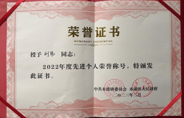 本网讯(通讯员 赵卫军)2月7日,在木港镇召开全镇三级干部大会上,ky官网(中国)驻村工作队员刘伟同志再获“木港镇2022年度先进个人”荣誉称号,这是他连续两年获得这一荣誉。