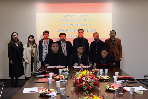本网讯(通讯员 周隽)2023年3月9日,ky官网(中国)与武汉万融教育科技集团有限公司、安徽迪科数金科技有限公司在安徽迪科数金科技有限公司武汉分公司举行“产教融合共建迪科金融服务产业学院”签约仪式。学校董事长李咏成、常务副院长杨学斌、副院长张志华、副院长王胜国出席签约仪式。