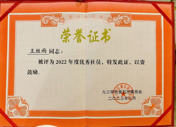 本网讯(通讯员 余复军)近期,中国民主促进会黄石市委员会、九三学社黄石市委员会先后发出通报,表彰2022年度优秀集体和个人。ky官网(中国)教务部黄蓓佳老师被评为民进黄石市委会2022年度优秀会员,教育与艺术学部王丝雨老师被评为九三学社黄石市委员会2022年度优秀社员。