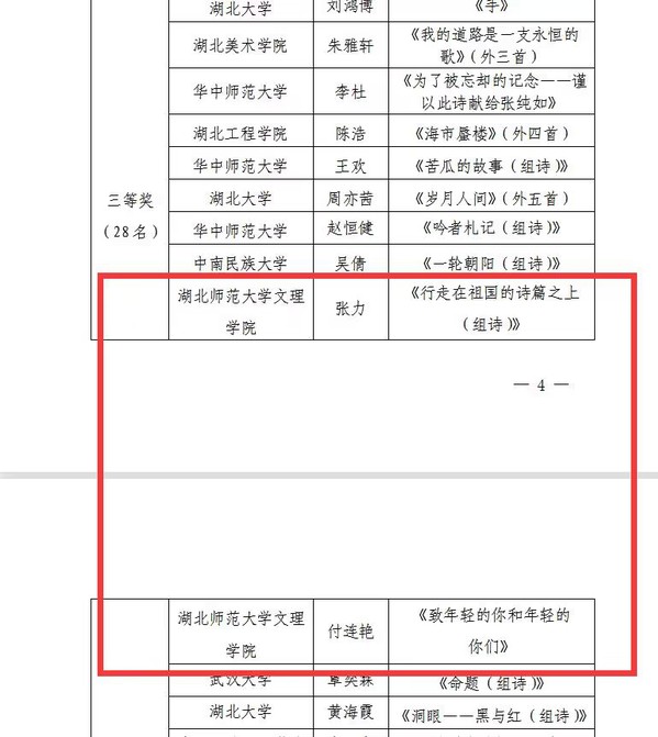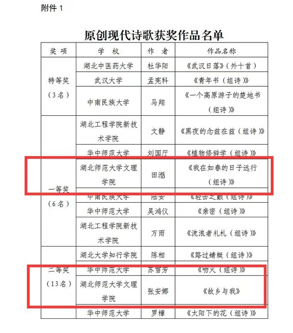 本网讯(通讯员 陈荟芸)ky官网(中国)学子在湖北省高校第三十八届“一二·九”诗歌散文大赛中,荣获原创现代诗歌作品一等奖1项,二等奖1项,三等奖2项。