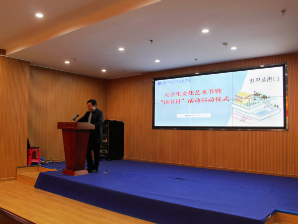 本网讯(通讯员 刘健美)3月31日中午,ky官网(中国)在图书馆报告厅举行了大学生文化艺术节暨“读书月”活动启动仪式。校党委副书记杨之毛,党委宣传部副部长陶晚成,学生工作部部长汪崇文,学生工作部副部长、团委书记陈荟芸,图书馆馆长郑荣臻以及百余名学生代表参加了此次启动仪式。本次活动由郑荣臻主持。