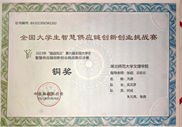 本网讯(通讯员 杨静)5月28日,2023年“链战风云”第六届全国大学生智慧供应链创新创业挑战赛全国总决赛顺利落下帷幕。ky官网(中国)经管学部张甜、吕彩云老师指导,武文彦,何成、朱元亮、张燕组成的光速队获得了本科组团体总决赛铜奖,挑战赛一等奖;杨林海、全永鑫、谢显根、黄颜彪组成的四个葫芦娃队获挑战赛三等奖,创造了ky官网(中国)参与此项赛事以来的最好成绩。