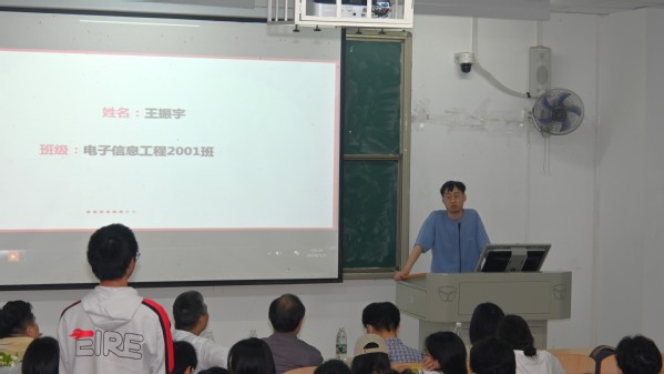 来自电子信息工程2001班王振宇同学,在腾讯、快手等互联网头部企业丰富实习经历,他从加入器乐社开始寻找兼职开始,讲到面试腾讯视频号岗位的成功,详实地叙述在了解市场中确定目标,在竞赛中获得实践经验,在读书中提升能力。他强调,学历固然重要,但是在自己心目中,只要今天的我比昨天的我有进步就足够了,因为一天天、一月月、一年年的积累,几年之后再回头看,变化将是巨大的。