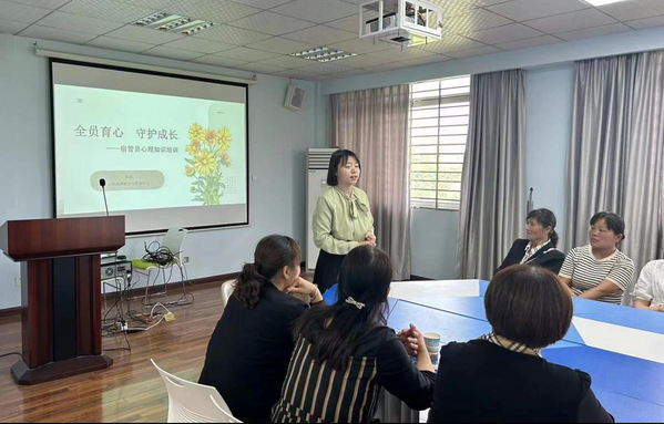 培训中,心理中心陈庆老师结合丰富的案例向宿管员科普了大学生常见的心理和精神问题表现,讲解了如何从言语、情绪和行为上识别大学生的心理危机以及初步干预方法,并引导宿管员进行自我关怀,提升心理能量。随后,宿管员就日常工作的开展和遇到的问题与陈庆老师进行了充分交流互动。他们纷纷表示,此次培训让自己进一步认识到了自身工作的重要性,对学生“一反常态”后该如何处理,也有了清晰的认知。