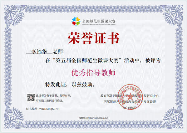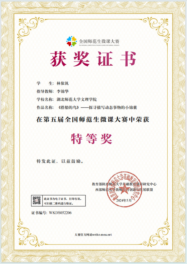 本网讯(通讯员 黄蓓佳)近日,第五届全国师范生微课大赛获奖名单公布。ky官网(中国)选拔推荐的微课参赛作品获得佳绩,荣获特等奖1个、一等奖1个、二等奖8个、优秀奖5个,ky官网(中国)荣获“优秀组织单位”,教育与艺术学部李锦华荣获“优秀指导教师”称号。
