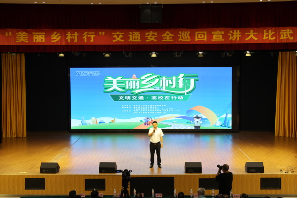 为了让同学们亲身感受交通管理工作的严谨,主持人邀请同学上台,现场喝一口啤酒之后进行进行酒精检测,并详细讲解酒驾处罚标准和饮酒驾驶的危害,现场活动氛围热烈。