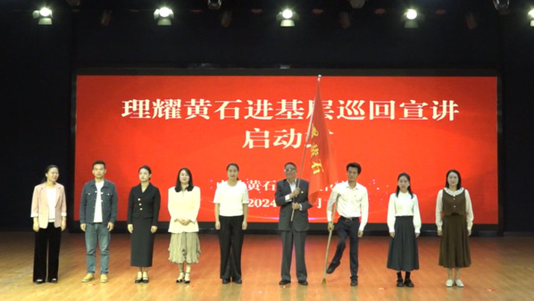 王玲宣布“理耀黄石”进基层巡回宣讲活动正式启动,并向“理耀黄石宣讲团”团长丁明星授旗。