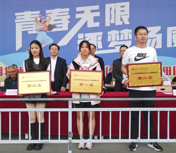 党委书记杨邓红致闭幕辞,他强调,少年强则中国强,青年兴则国家兴,文理学子要以“有理想、敢担当、能吃苦、肯奋斗”的精神风貌迎接时代变化。他希望全体师生将赛场上的热情和活力转化为强身健体、顽强拼搏的斗志,凝聚成积极进取、发奋图强的合力,以良好的身体素质和精神风貌奋进新征程、推动新跨越。